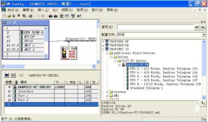 丹佛斯 FC300 系列變頻器 ProfiNet GSD 文件名為“GSDML-V2.2-Danfoss-FC-20090827. xml”(可從丹佛斯官網(wǎng)下載)。