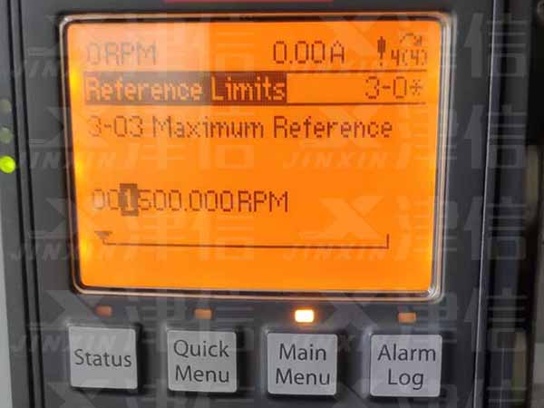 使用上下鍵選擇3-02,進(jìn)行最小頻率設(shè)置,此時的單位是RPM轉(zhuǎn)速