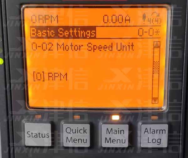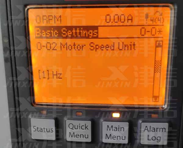 選擇0-02,選擇電機速度單位,默認(rèn)為選項[0]:RPM,[1]為Hz