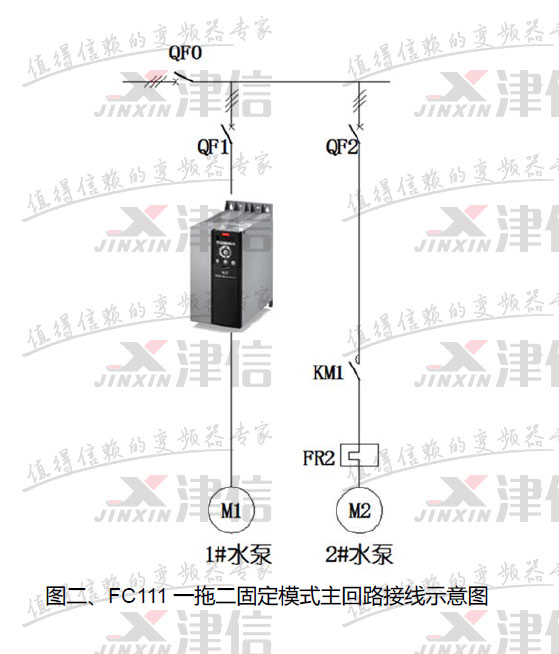 丹佛斯FC111 是新一代的HVAC風機水泵專用型變頻器,這里我們介紹FC111 多泵控制一拖二固定模式的詳細應用。