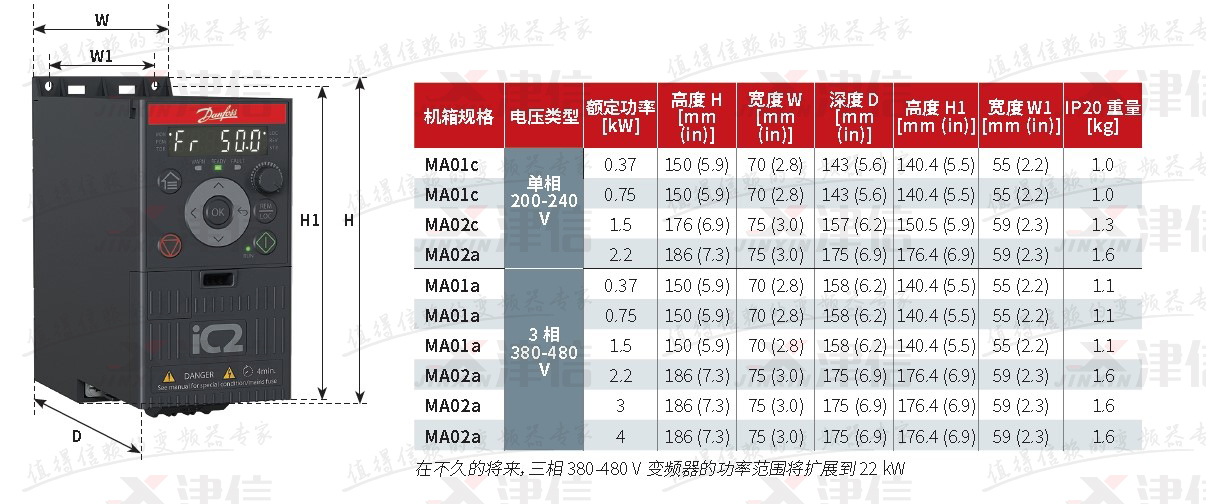 丹佛斯變頻器IC2提供單相220V和三相380V兩種輸入電壓規(guī)格,功率范圍從0.37-4KW,不久的未來(lái),會(huì)擴(kuò)展到22KW。