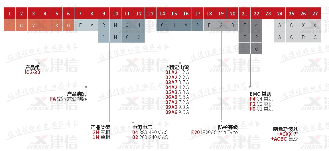 如:IC2-30FA3N04-01A2E20F4+ACXX