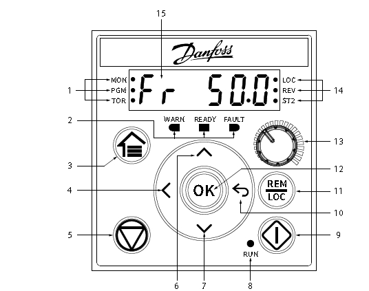 丹佛斯IC2 MICRO變頻器是丹佛斯最新推出的一款通用變頻器,可以通過面板方便的進行參數設置: