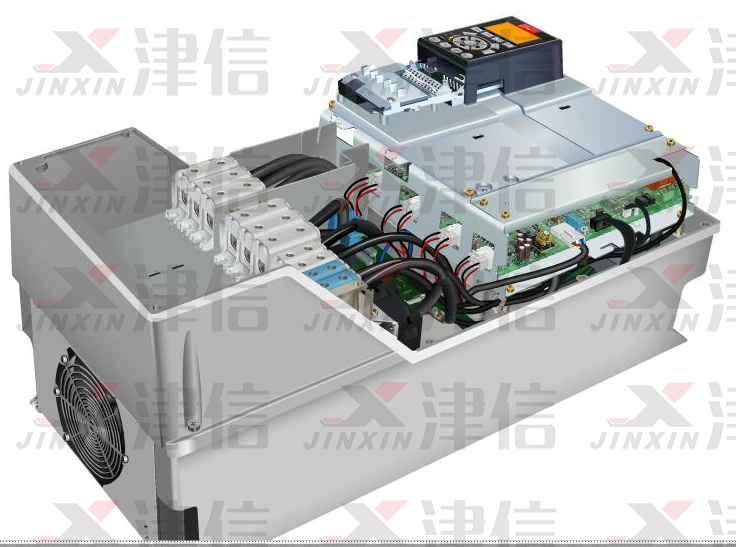 丹佛斯FC0302P37K5T5E55變頻器功率為37KW,封裝等級為I55,該機型拆裝比較簡單。根據客戶的反映情況,檢查該變頻器。先拆上蓋板,可以看到變頻器的全部概括(如下圖)。依次拆下變頻器的圖型面板、控制卡、后再拆固定板,可以把電源卡取下。測試電源卡整流模塊,逆變模塊,電解電容,全部正常。但是送電就顯示A33故障。