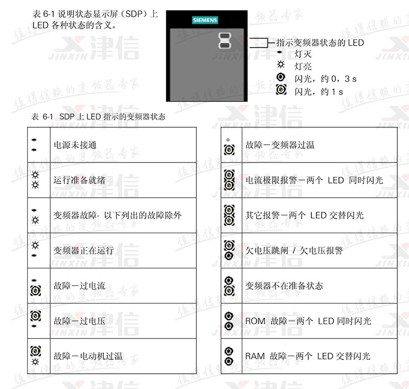 故障值: 1.有些功率部件的測(cè)試有故障 2.有些控制板的測(cè)試有故障 4.有些功能測(cè)試有故障 8.有些 I/O 模塊的測(cè)試有故障。(僅指 MM 420) 16.上電檢測(cè)時(shí)內(nèi)部 RAM 有故障 |
