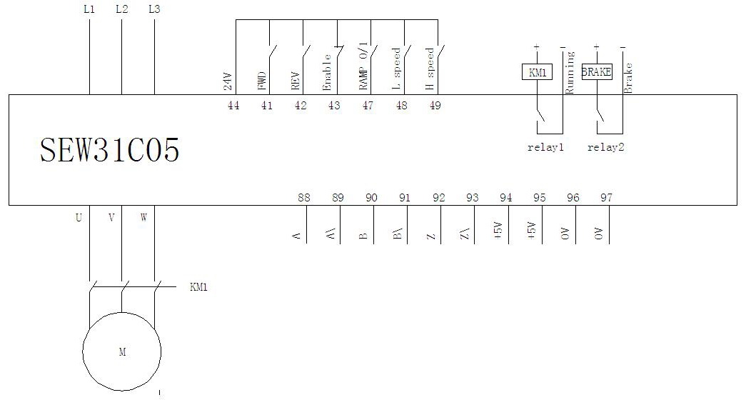 堆垛機(jī)是整個(gè)自動(dòng)化立體倉(cāng)庫(kù)的核心設(shè)備,通過(guò)手動(dòng)操作、半自動(dòng)操作或全自動(dòng)操作實(shí)現(xiàn)把貨物從一處搬運(yùn)到另一處。它由機(jī)架(上橫梁、下橫梁、立柱)、水平行走機(jī)構(gòu)、提升機(jī)構(gòu)、載貨臺(tái)、貨叉及電氣控制系統(tǒng)構(gòu)成。其原有的提升機(jī)構(gòu)是通過(guò)SEW變頻器驅(qū)動(dòng)的,由于SEW變頻器損壞,無(wú)法修復(fù),客戶急需生產(chǎn),所以用丹佛斯FC302系列變頻器進(jìn)行替代。