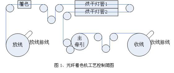 引言:光纖制造行業(yè)的一道關(guān)鍵工序就是光纖著色。該工序的工藝質(zhì)量好壞直接影響光纖產(chǎn)品的質(zhì)量。該設(shè)備控制復(fù)雜,包括放線、放線排線、主牽引、收線和收線排線等運動控制以及烘干燈管等附屬工藝裝置的控制。尤其是對收線排線的平整度要求很高。