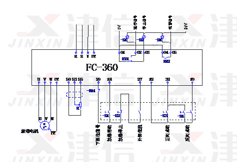 此應(yīng)用事例中,放線架配置了升降臺,用于裝載和卸下放卷盤,升降臺只允許在放卷停機時進行操作。為避免在運行過程中誤操作升降臺,使用FC360的繼電器2在運行時輸出一個信號給控制升降臺回路中的繼電器,放卷運行時斷開升降控制回路,從而保證升降機不被啟動。