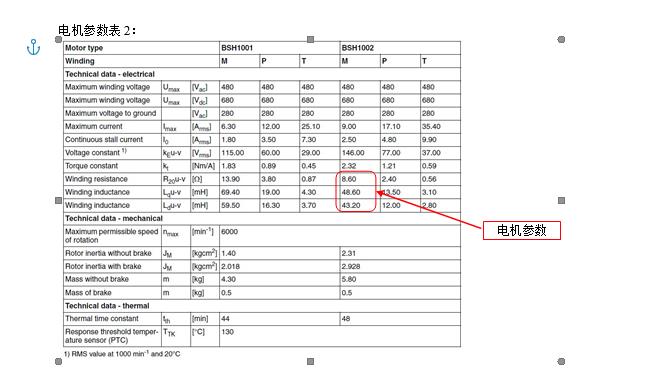 查閱電機說明書,得到電機參數表1: