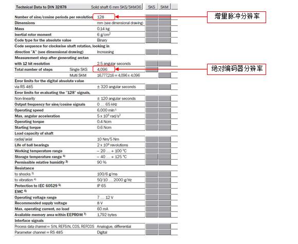 查閱編碼器說明書,得到編碼器參數表: